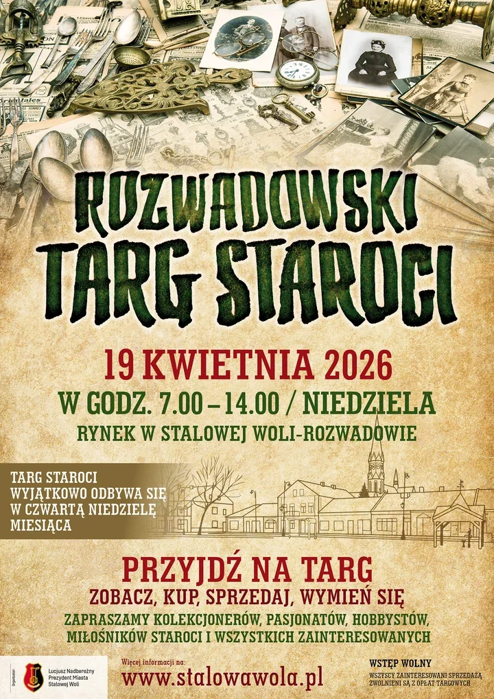 Rozwadowski Targ Staroci odbędzie się w niedzielę 19 kwietnia 2026 r. w godz. 7:00–14:00. Wśród wystawionych rzeczy mają pojawić się m.in. antyki, stare monety, porcelana, winyle, biżuteria i inne przedmioty, które zwykle znikają z codziennego obiegu, ale właśnie na takim targu odzyskują drugie życie.