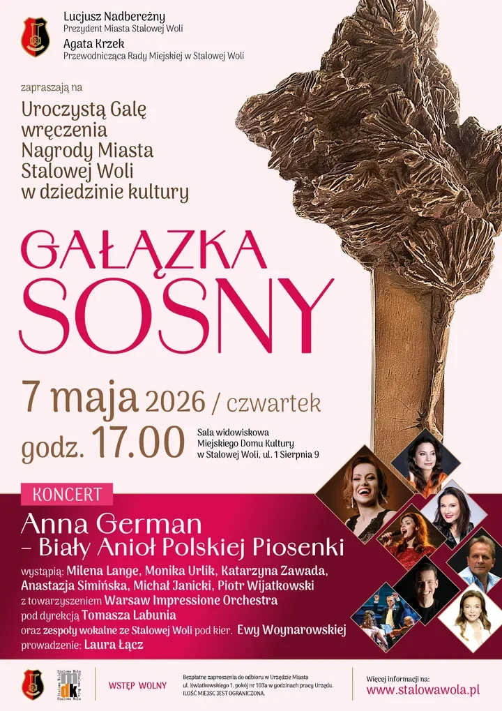 Koncert wpisuje się w tradycję „Gałązki Sosny”, nagrody przyznawanej w Stalowej Woli osobom, instytucjom i animatorom, którzy tworzą oraz upowszechniają kulturę. Statuetka wręczana jest już od ponad ćwierć wieku, a w 2026 roku zostanie przyznana po raz 27. To wyróżnienie ma w mieście szczególną wagę, bo nie ogranicza się do symbolicznego gestu podczas gali. Przez cały rok tworzy wokół siebie szerszy krąg wydarzeń, spotkań i koncertów.