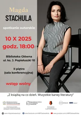Zapraszamy na wieczorne spotkanie autorskie z Magdą Stachulą – jednym z najgłośniejszych nazwisk polskiego kryminału i domestic noir. Wydarzenie odbędzie się w ramach Nocy Bibliotek w Miejskiej Bibliotece Publicznej w Stalowej Woli i skierowane jest do czytelników zainteresowanych procesem tworzenia thrillerów oraz kulisami pracy pisarki.